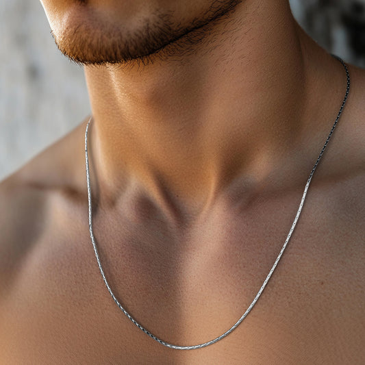 Discover men’s silver chains & necklaces — clean, versatile, and designed for effortless layering. Tarnish-resistant, and made for everyday wear — whether it’s city nights or casual days. You are Saint À Voir. Never settle for ordinary.